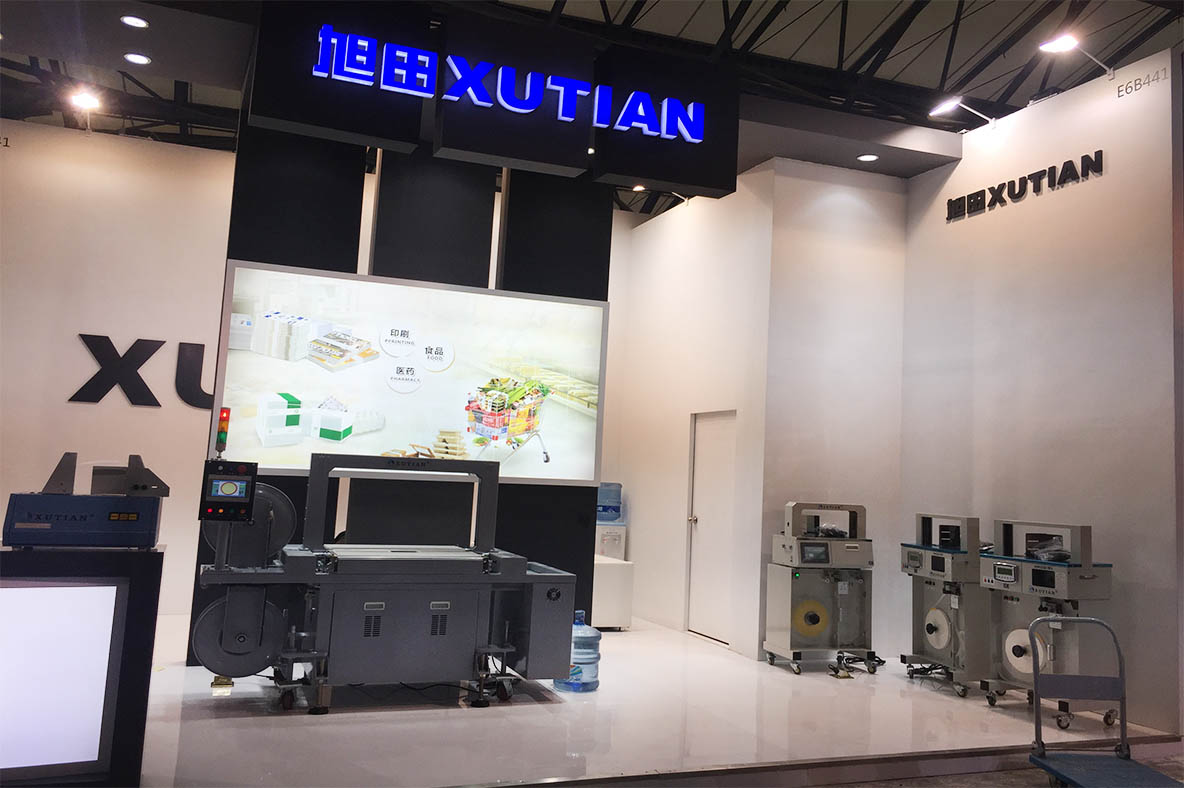 旭田包裝機(jī)械公司專注于束帶機(jī),捆包機(jī)研發(fā)和生產(chǎn)的包裝機(jī)械公司,經(jīng)過二十多年束帶、捆包行業(yè)技術(shù)沉淀和積累,已掌握了束帶和捆包方面的核心技術(shù)。旭田展位設(shè)計搭建圍繞著公司的產(chǎn)品展開,結(jié)合兩面擋板,很好的把觀眾的目光集中到展位上。