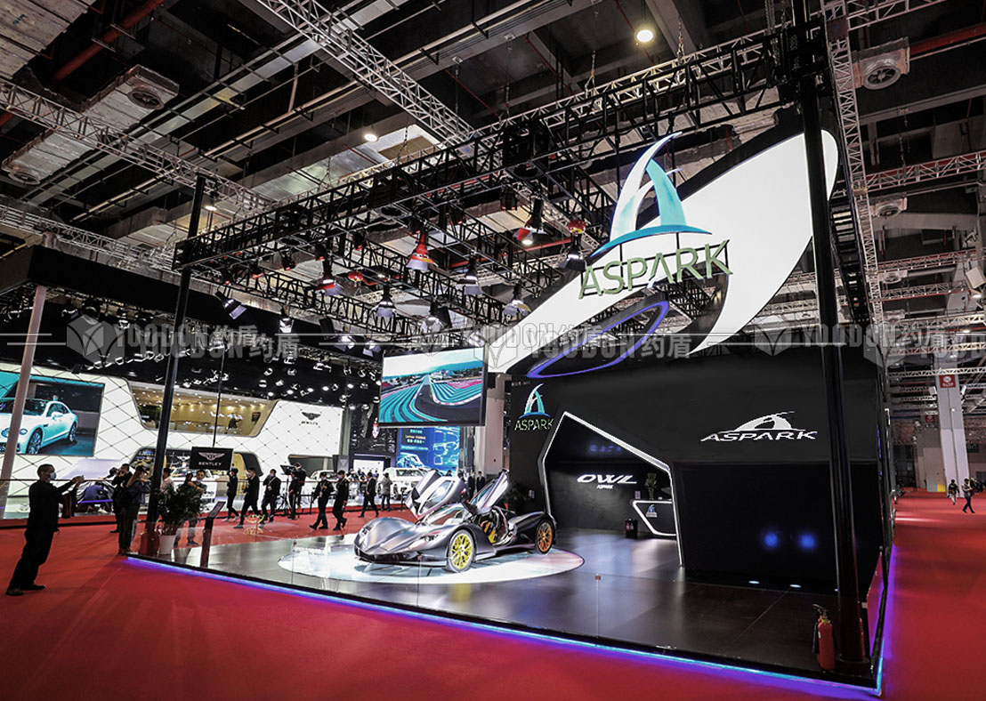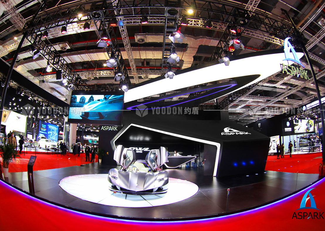 展臺(tái)設(shè)計(jì)思路皆尊崇速度感與獨(dú)特感,整體造型設(shè)計(jì)跳出常規(guī)邏輯,使人耳目一新,傾斜的異形吊頂仿佛是受到跑車高速行進(jìn)的風(fēng)速影響,在靜止的空間內(nèi)帶來極致的動(dòng)態(tài)感受,與展品的特性、造型等達(dá)到各方面的契合。