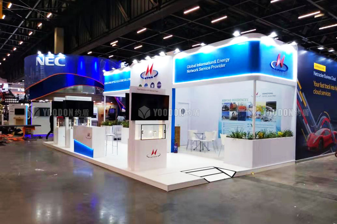 本屆展會(huì)約盾展覽為亨通光電提供了展位設(shè)計(jì)搭建服務(wù),亨通光電,是服務(wù)于光纖光網(wǎng)和電力電網(wǎng)及網(wǎng)絡(luò)建設(shè)運(yùn)營(yíng)、金融投資、新能源、新材料等多元領(lǐng)域的國(guó)家級(jí)創(chuàng)新企業(yè),中國(guó)光纖網(wǎng)絡(luò)、電力電網(wǎng)領(lǐng)域規(guī)模最大的系統(tǒng)集成商與網(wǎng)絡(luò)服務(wù)商,全球光纖通信前三強(qiáng)。